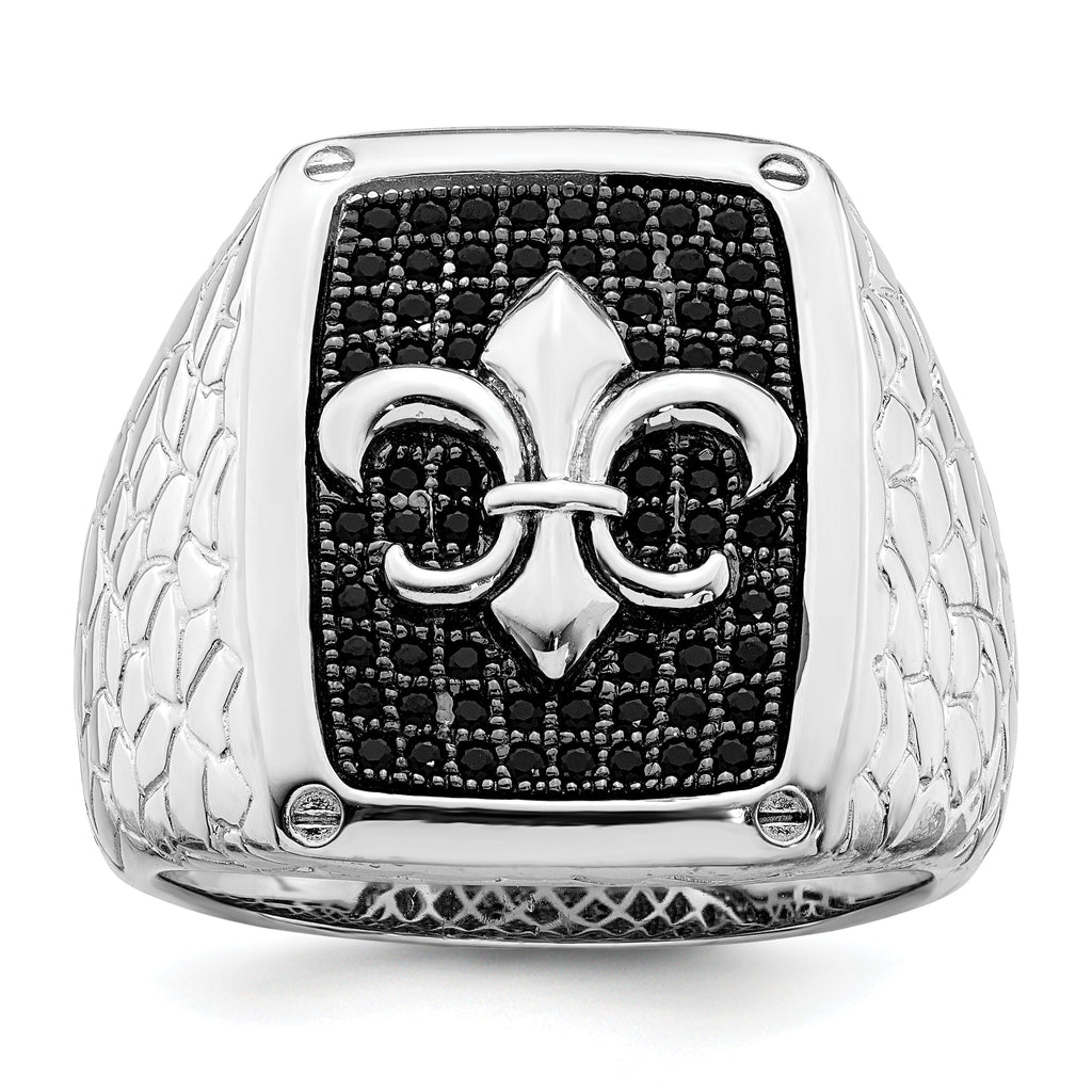 Brilliant Embers Sterling Silver Rhodium-plated 62 Stone Black Micro Pav‚ CZ Fleur De Lis Men's Ring