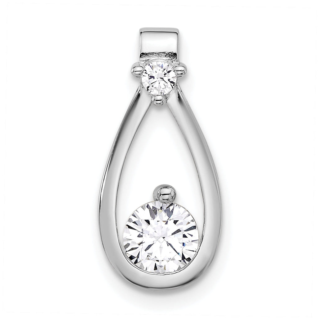 Sterling Silver Rhodium-plated with CZ Teardrop Shape Chain Slide