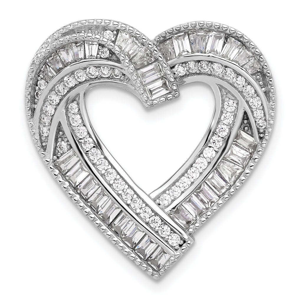 Sterling Silver Rhodium-plated CZ Heart Chain Slide Pendant