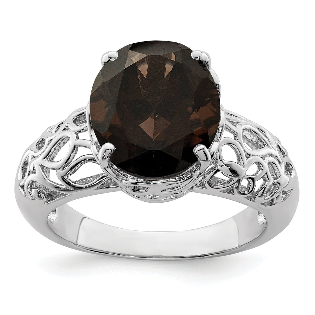 Sterling Silver Rhodium Oval Smoky Quartz Ring