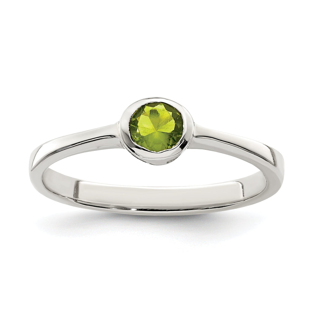 Sterling Silver Lime Green Round Bezel CZ Ring