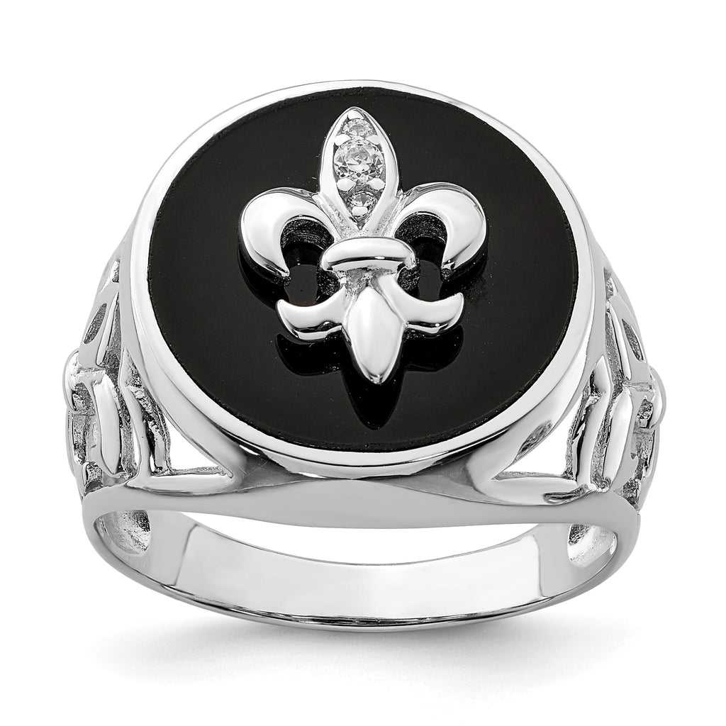 Sterling Silver Rhodium Plated CZ Black Onyx Ring