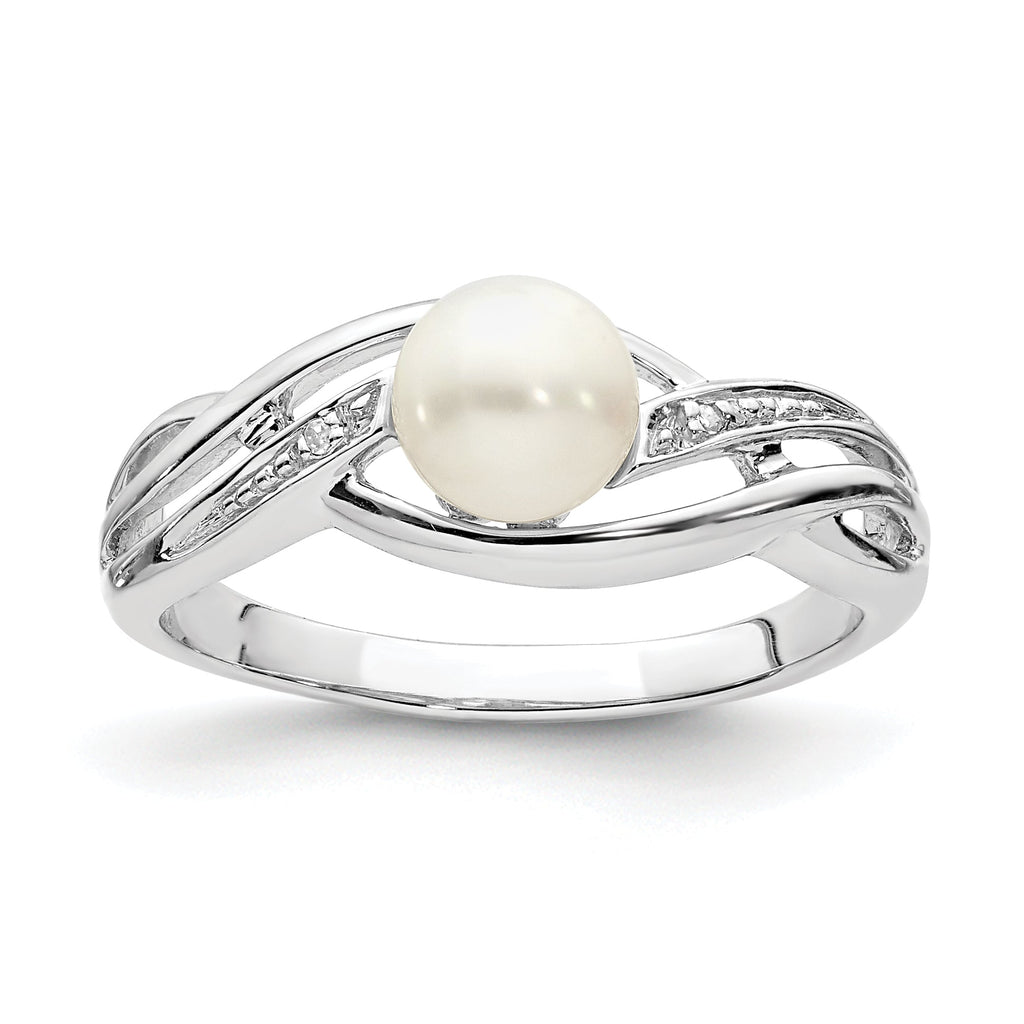 Sterling Silver Rhodium Plated Diamond and Fresh Water Cultured Pearl Ring
