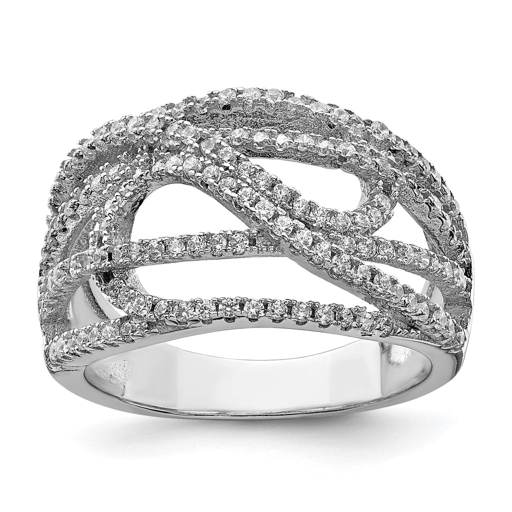 Sterling Silver Rhodium-plated CZ Micro pav‚ Ring