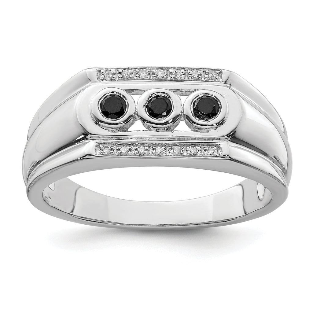 Sterling Silver Rhodium Plated Black and White Diamond Men's Ring
