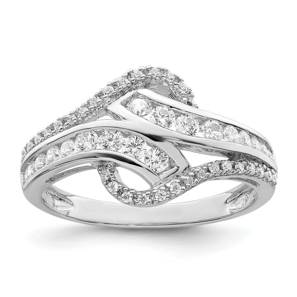 Sterling Silver Rhodium-plated Twist CZ Ring