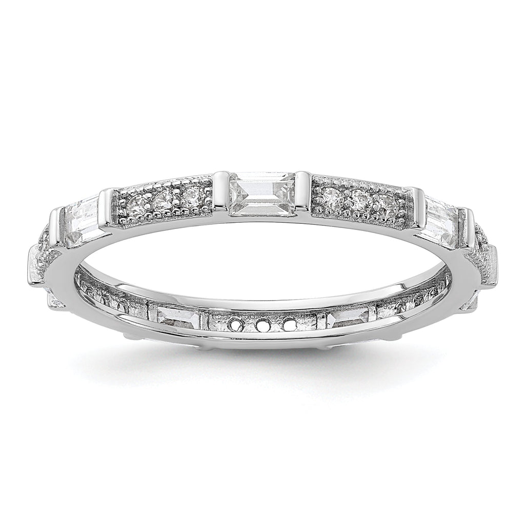 Sterling Silver Rhodium-plated Micro Pave and Baguette CZ Eternity Band