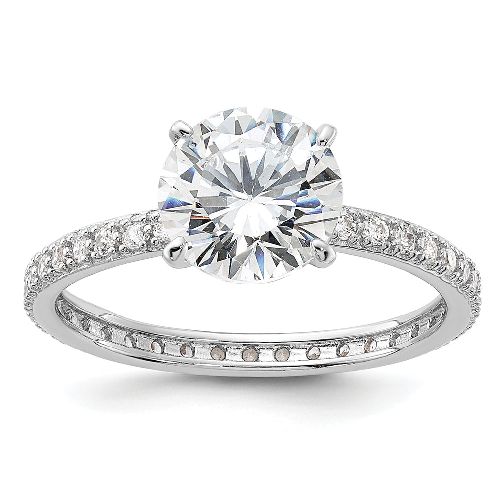 Sterling Silver Rhodium-plated 8mm CZ Solitaire Eternity Engagement Ring