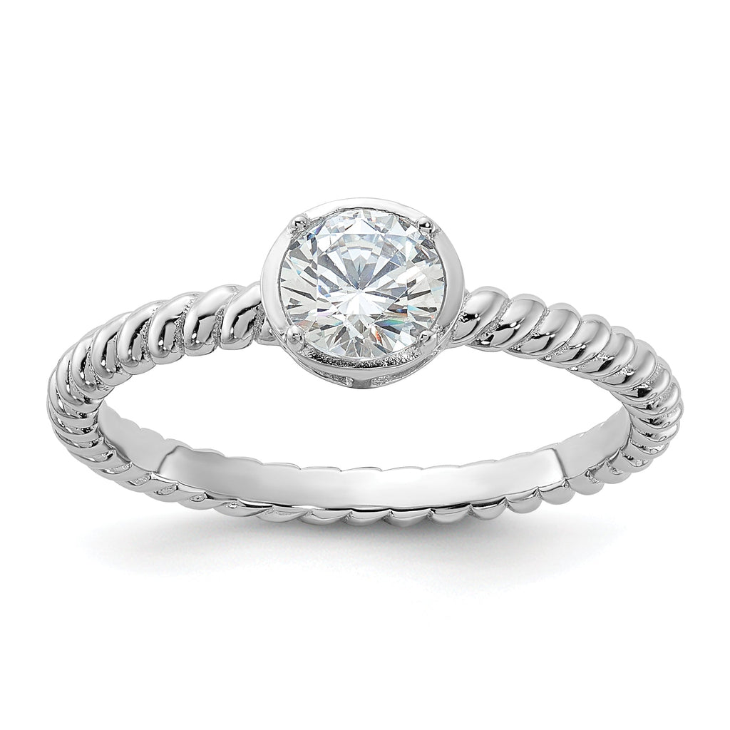 Sterling Silver Rhodium-plated CZ Twisted Ring