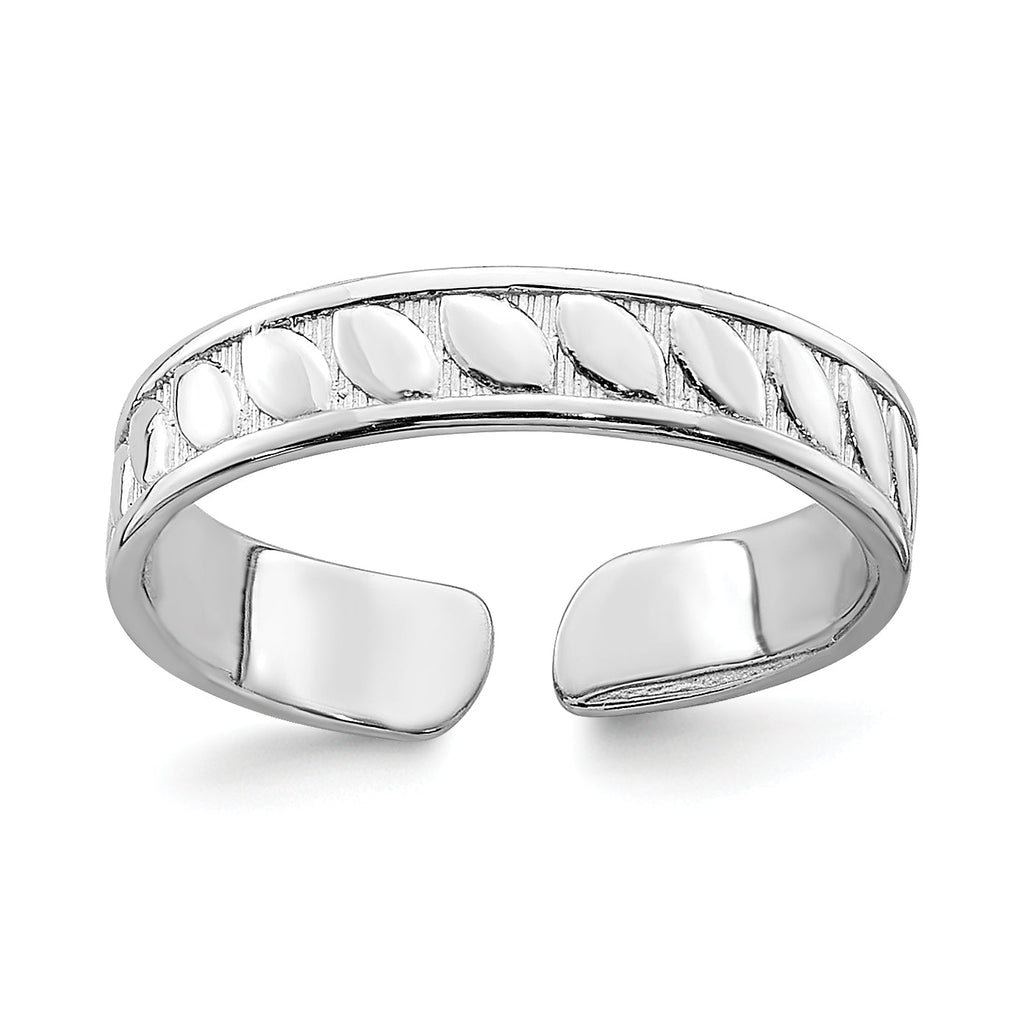 14k White Gold Adjustable Leaf Engraved Design Toe Ring