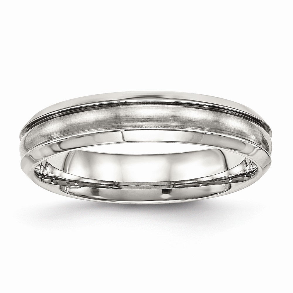 Celebrate your everlasting commitment with our Stainless Steel Brushed and Polished Ridged Band—crafted for those who value enduring style and understated sophistication. This stunning wedding band is designed to be both a symbol of your love and a seamless addition to your daily wear, combining polished brilliance with a brushed matte finish for a refined, modern contrast. With its 5.00mm width, this sleek band offers the perfect blend of comfort, durability, and timeless appeal for today and tomorrow.