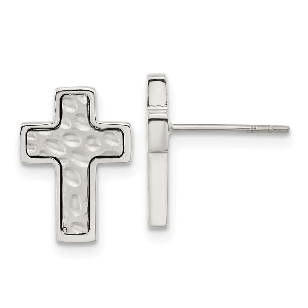 Chisel Stainless Steel Brushed Polished and Textured Cross Post Earrings