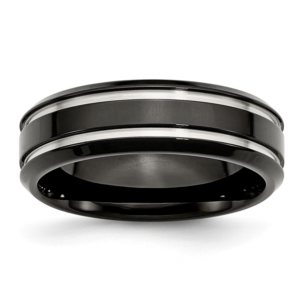 Elevate your look with the exquisite Stainless Steel Black IP-Plated Grooved and Polished 7mm Band, a striking and timeless piece that makes a bold statement. Whether you're searching for the perfect wedding band or a sophisticated everyday ring, this sleek design delivers unmatched style and durability. Crafted from premium stainless steel and enhanced with black ion-plating, this band features a polished finish and subtle grooves for a contemporary touch that appeals to both modern and classic sensibilities.